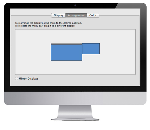 - N’hésitez pas à modifier l’emplacement de vos écrans dans vos paramètres d’affichage afin de placer la TV du bon coté, mais laissez l’écran de votre ordinateur en tant qu’écran principal.