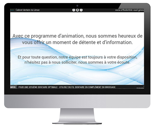 En function du réseau installé dans votre cabinet, vous aurez un choix plus ou moins large de solutions techniques à mettre en place afin de diffuser votre programme d’animation.